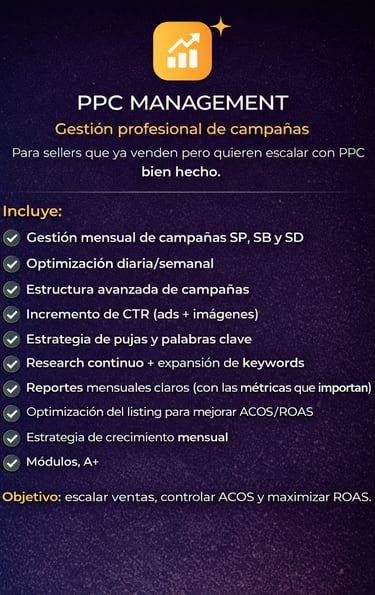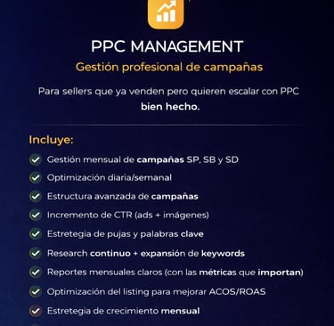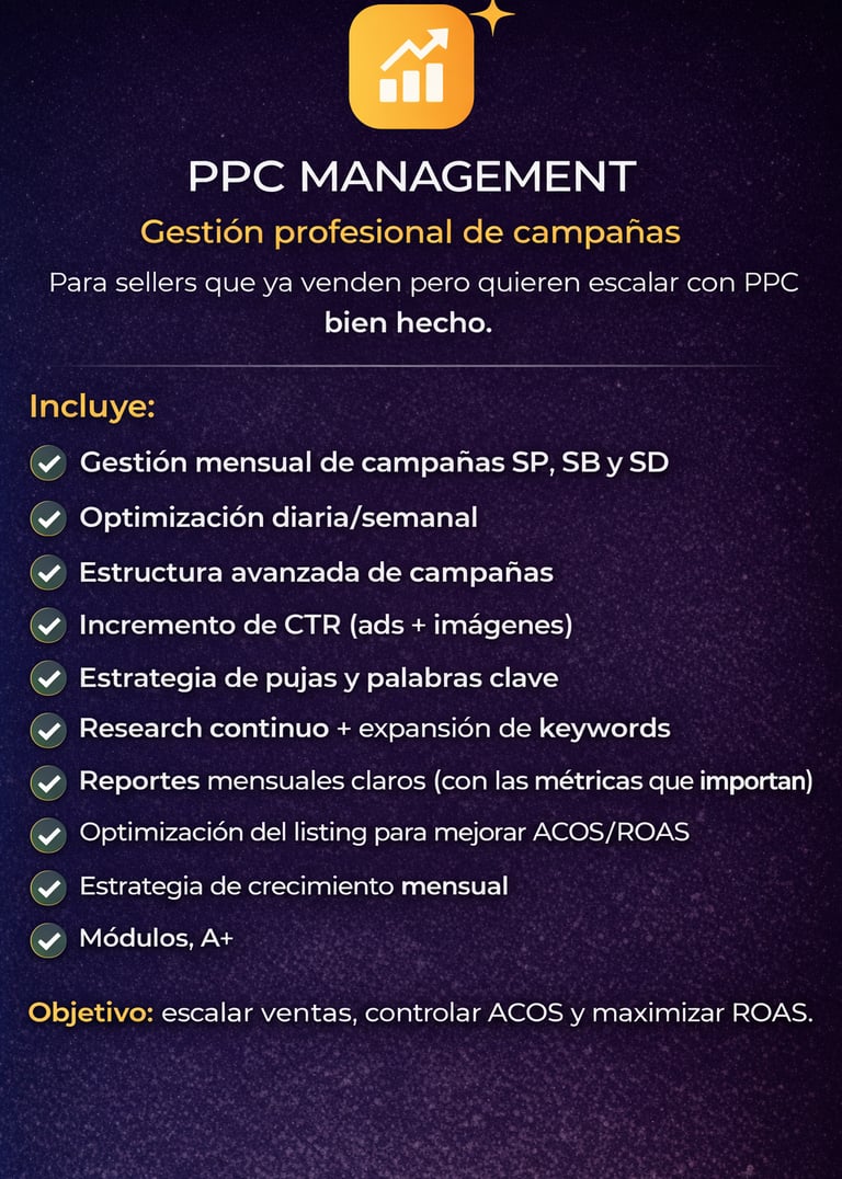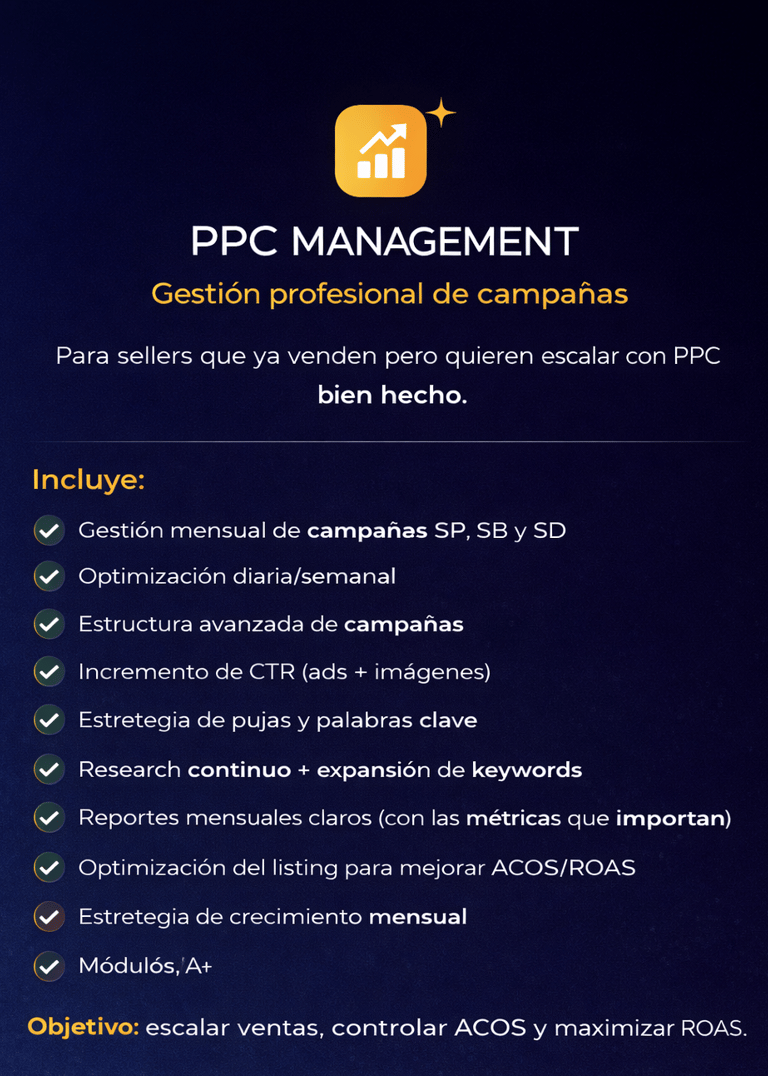 Acompaño a emprendedores y fabricantes a optimizar cada etapa de su embudo en Amazon, aplicando estrategias personalizadas, gestión PPC avanzada y análisis profundo de métricas para generar resultados reales y comprobables.